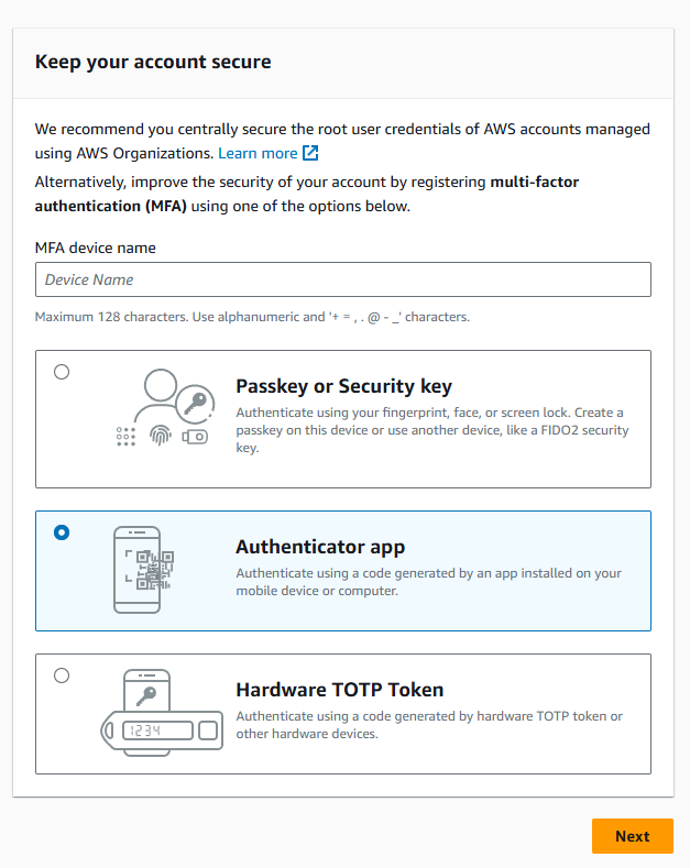 (MFA devie name을 설정하지 않으면, 인증 앱의 이름(e.g. Authapp)으로 생성됩니다)